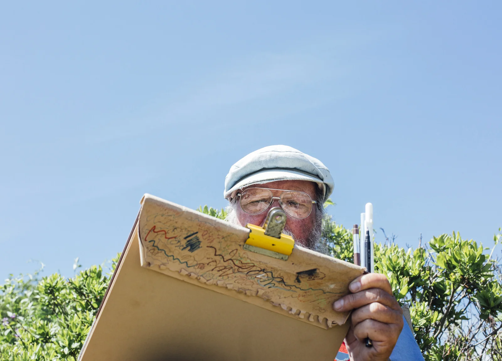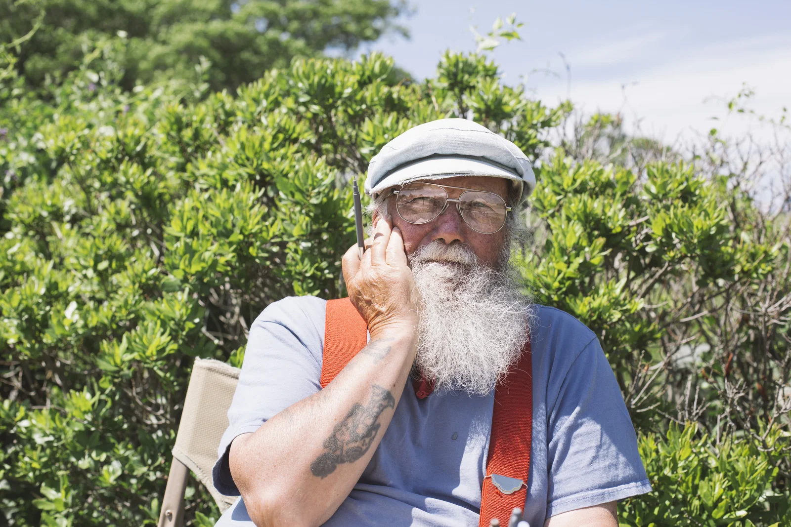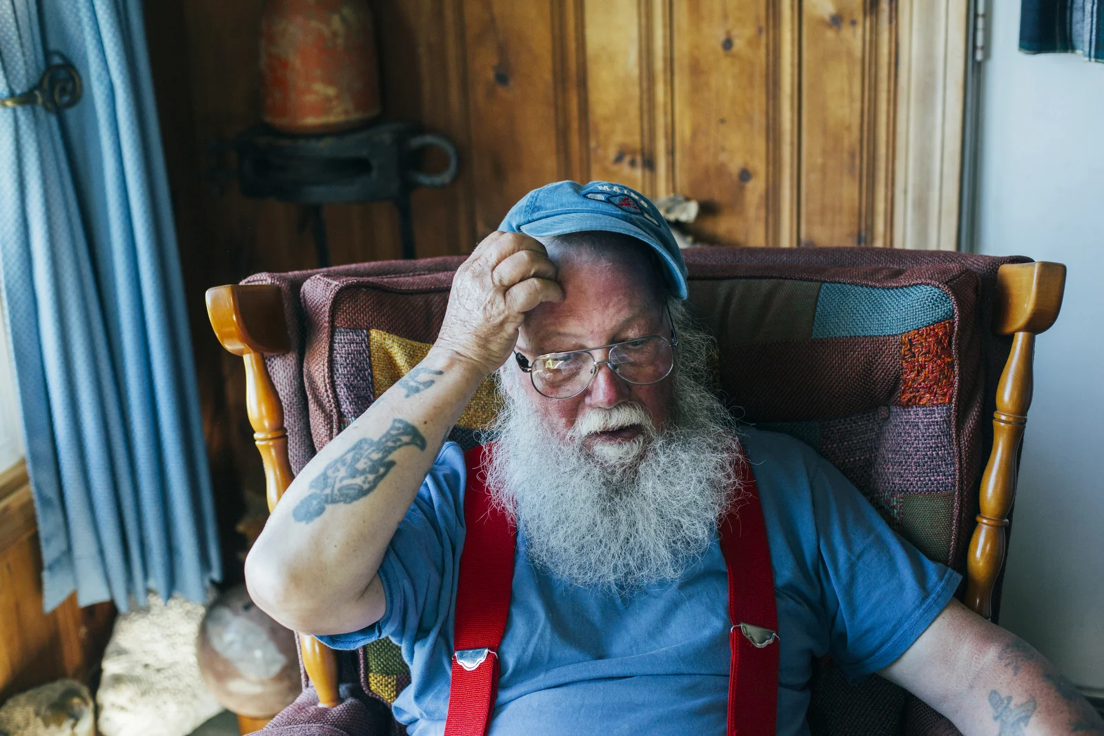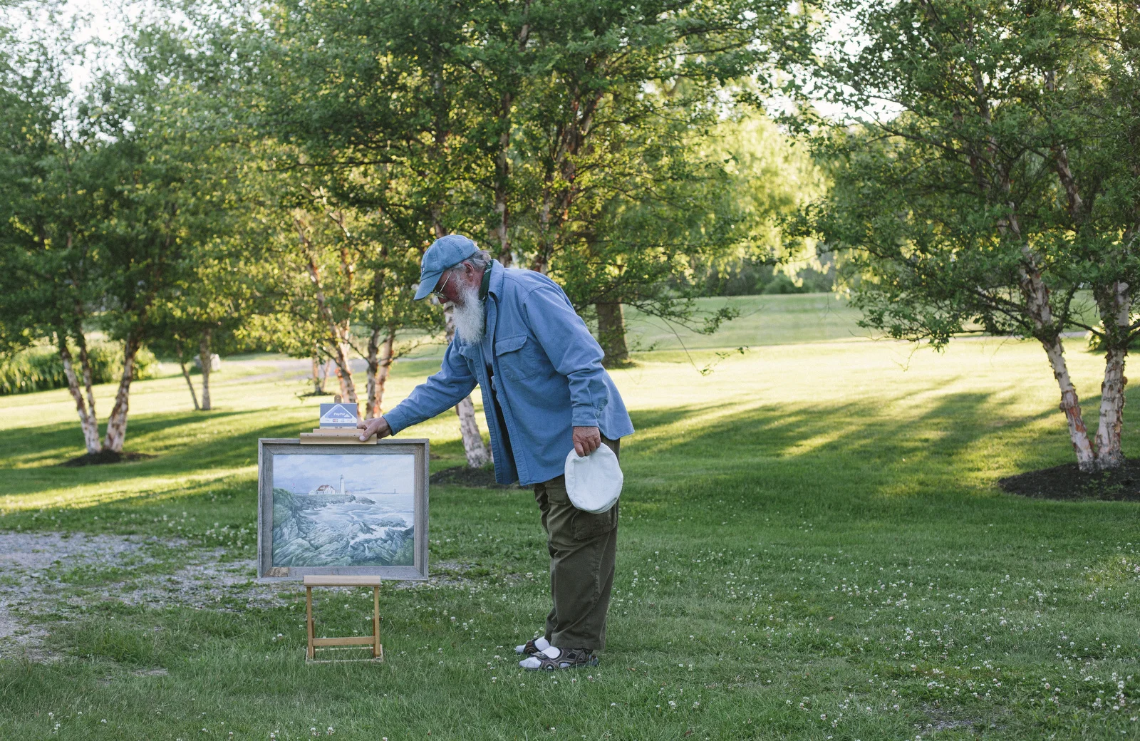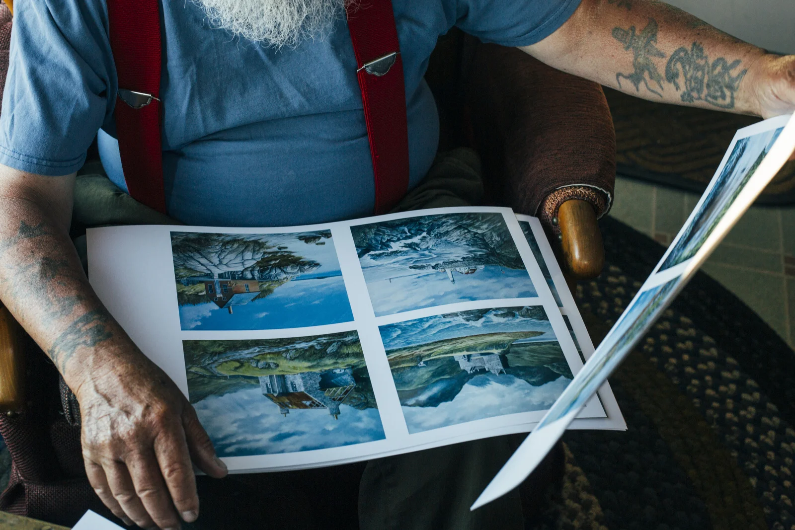 Kris Kristiansen sells his prints of oil paintings at Fort Williams Park in Cape Elizabeth, and I've passed his stand quite a bit over the time (two months shy of a year at this point!) I've been in Maine. We do a weekly feature called On the Job at the Press Herald, which is basically what it sounds like, photographing someone doing their job. I enjoy the chance to find and photograph people like Kris, who do what they love. It's an infections kind of energy. And don't let Kris' tattoos and facial hair fool ya like the rest - he didn't spend his life at sea, trawling the Gulf of Maine for groundfish. Kris is a wonderful human being, and the sort of person that's seemingly held every kind of job. There was that stint in a coal mine, the time in the tannery, a brief go at a paper mill, and the longest one of all, 25 years owning a store with his wife, Marilyn, in the Scottish highlands where he's from. The couple moved to Maine in 2007 to take care of Marilyn's family home in Cape Elizabeth, and when they moved Kris had a time adjusting to the harsh winters. "We don't ski, we don't snow shoe, and we're not getting any younger. I guess I'm a creative person, and creative people have to create, and when I came here I was doing nothing," Kris said. It was Marilyn who suggested Kris start painting to pass the snowy days, and now, Kris paints for up to 15 hours a day every winter. He now sells prints of that work in the park most every nice day in the summertime.